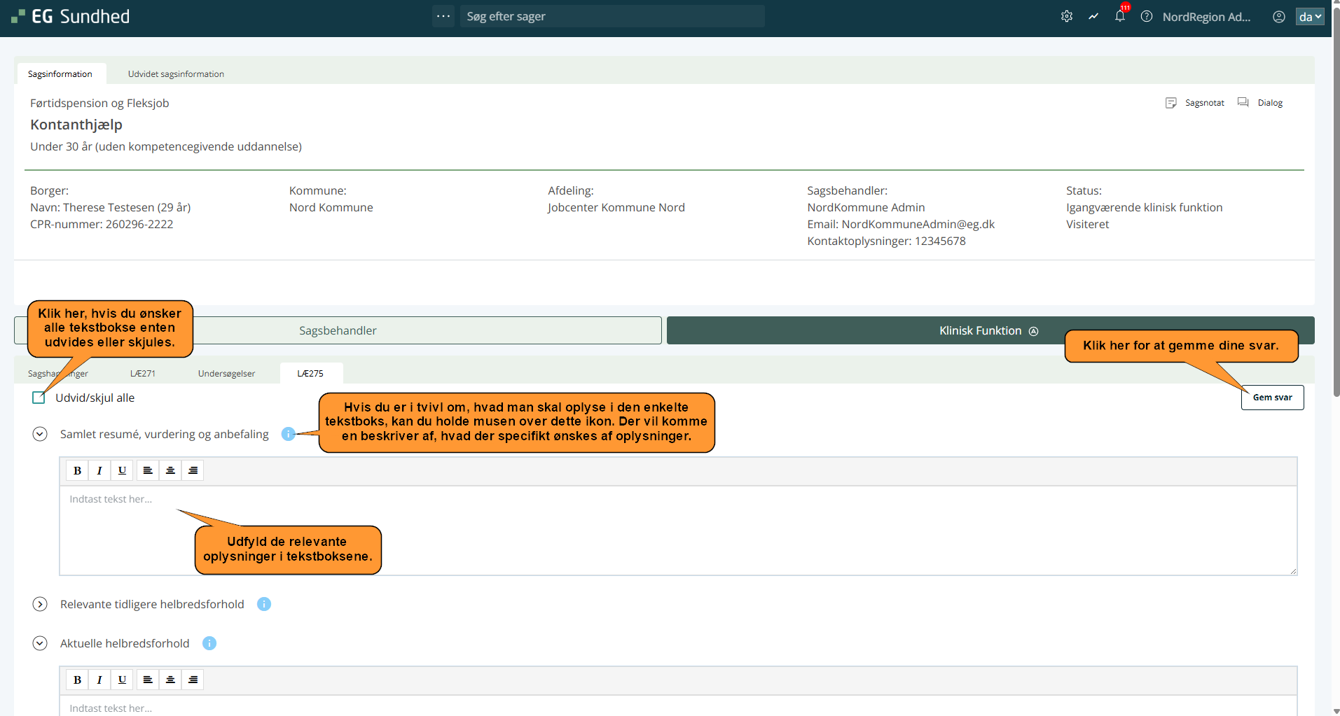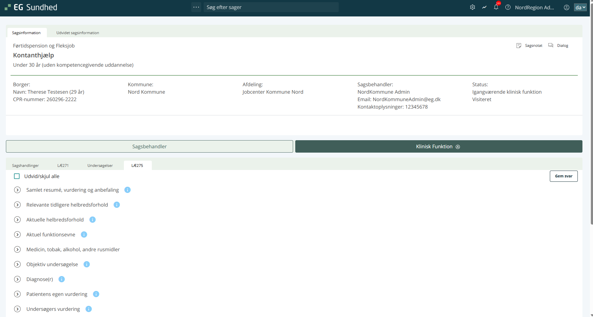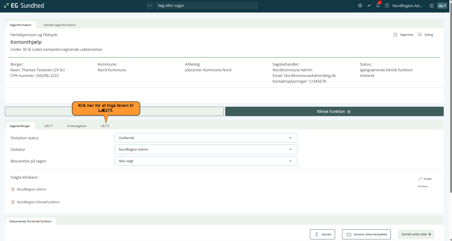 For at kunne tilgå LÆ275 og udfylde, skal Visitation status under Sagshandlinger stå som Godkendt.