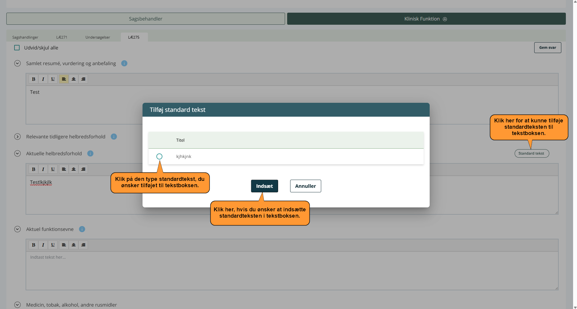 LÆ275 udfyldes af klinisk funktion, efter henvisningen af undersøgelse og mødet mellem borger og læge er hændt.