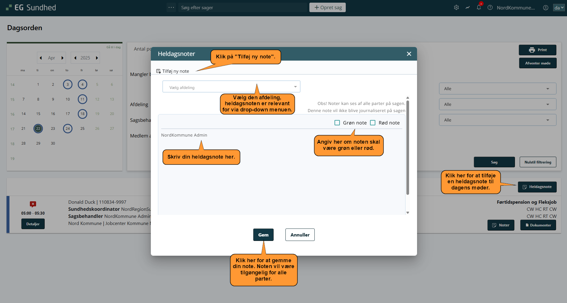 - Skriv din heldagsnote og angiv om noten skal være grøn eller rød.