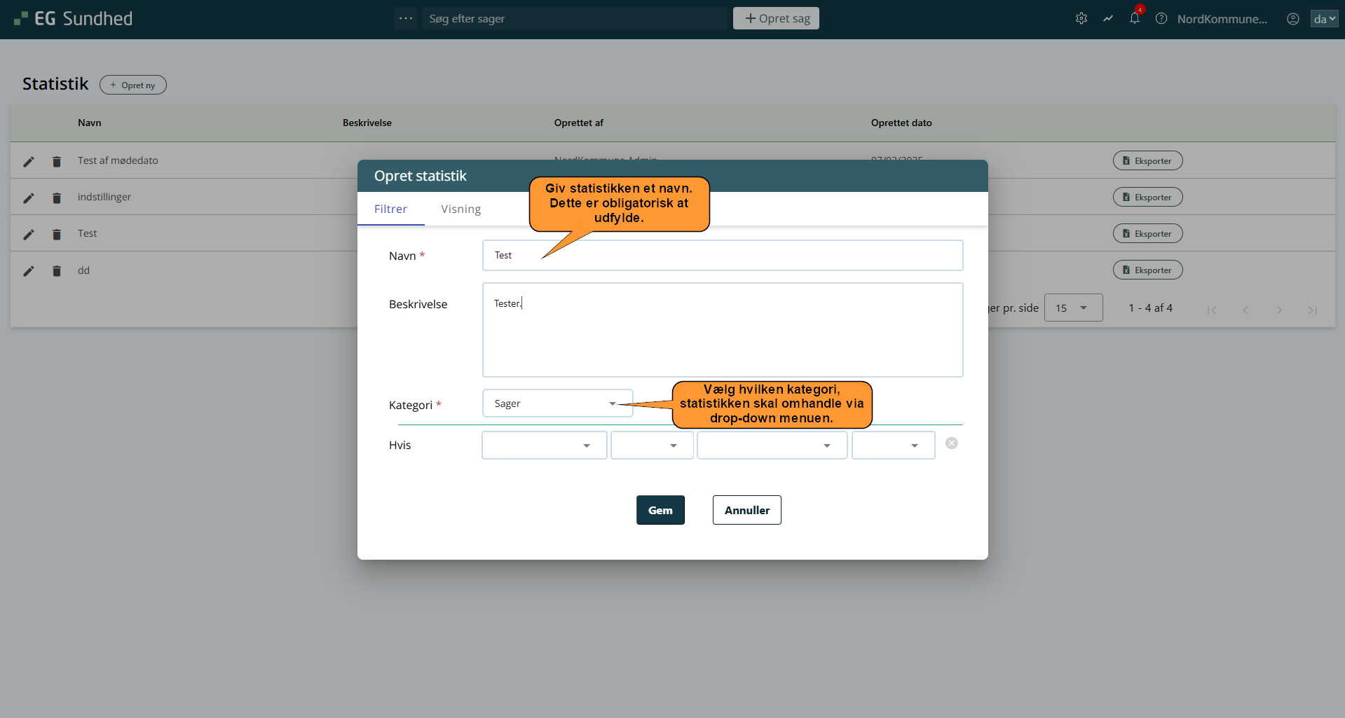 - Ønsker du at redigere statistikken, klikker du på -ikonet ud for den statistik, der skal redigeres.