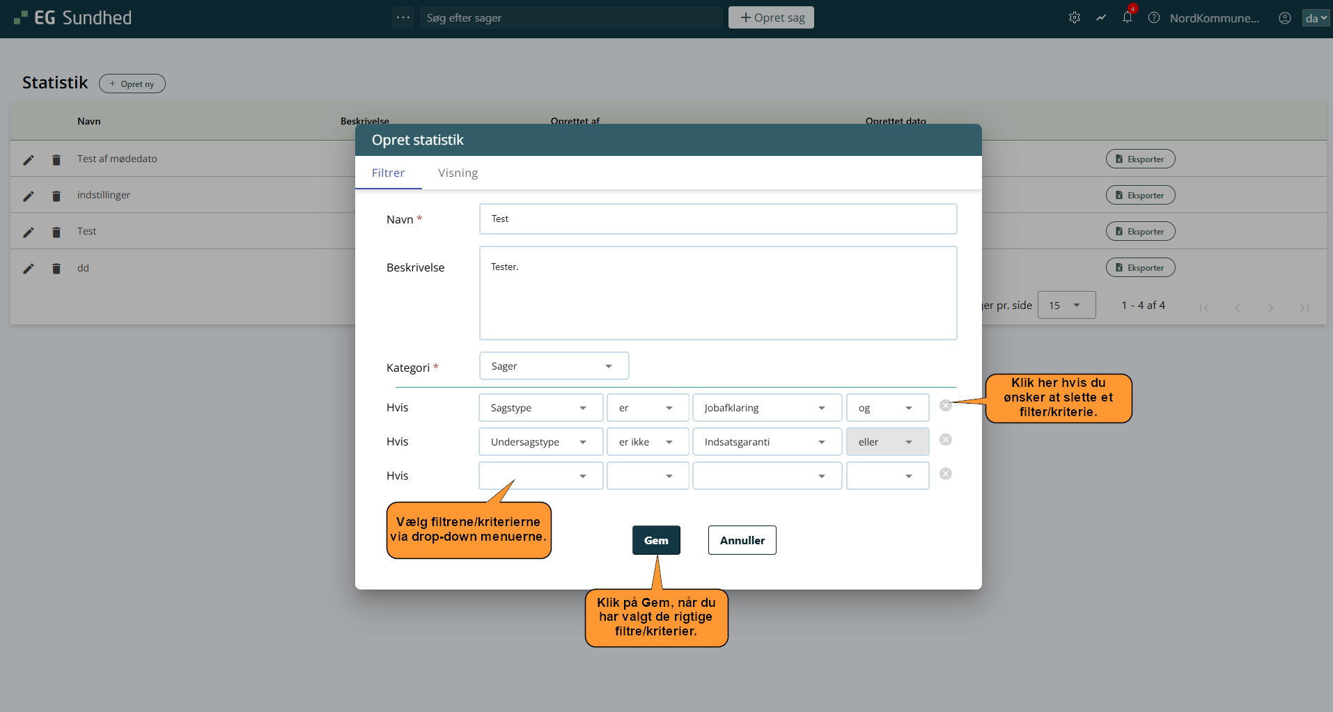 - Når du har indsat de rigtige filtreringer/kriterier, klikker du på Gem.