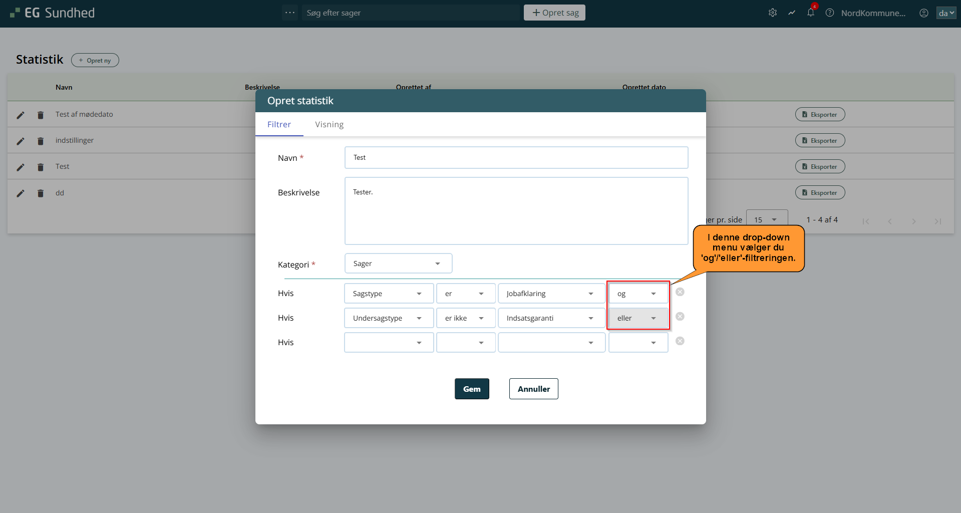 - For at bruge statistikmodulet korrekt, er det vigtigt at vide hvordan 'og' og 'eller' operationerne, når du filtrerer din data.