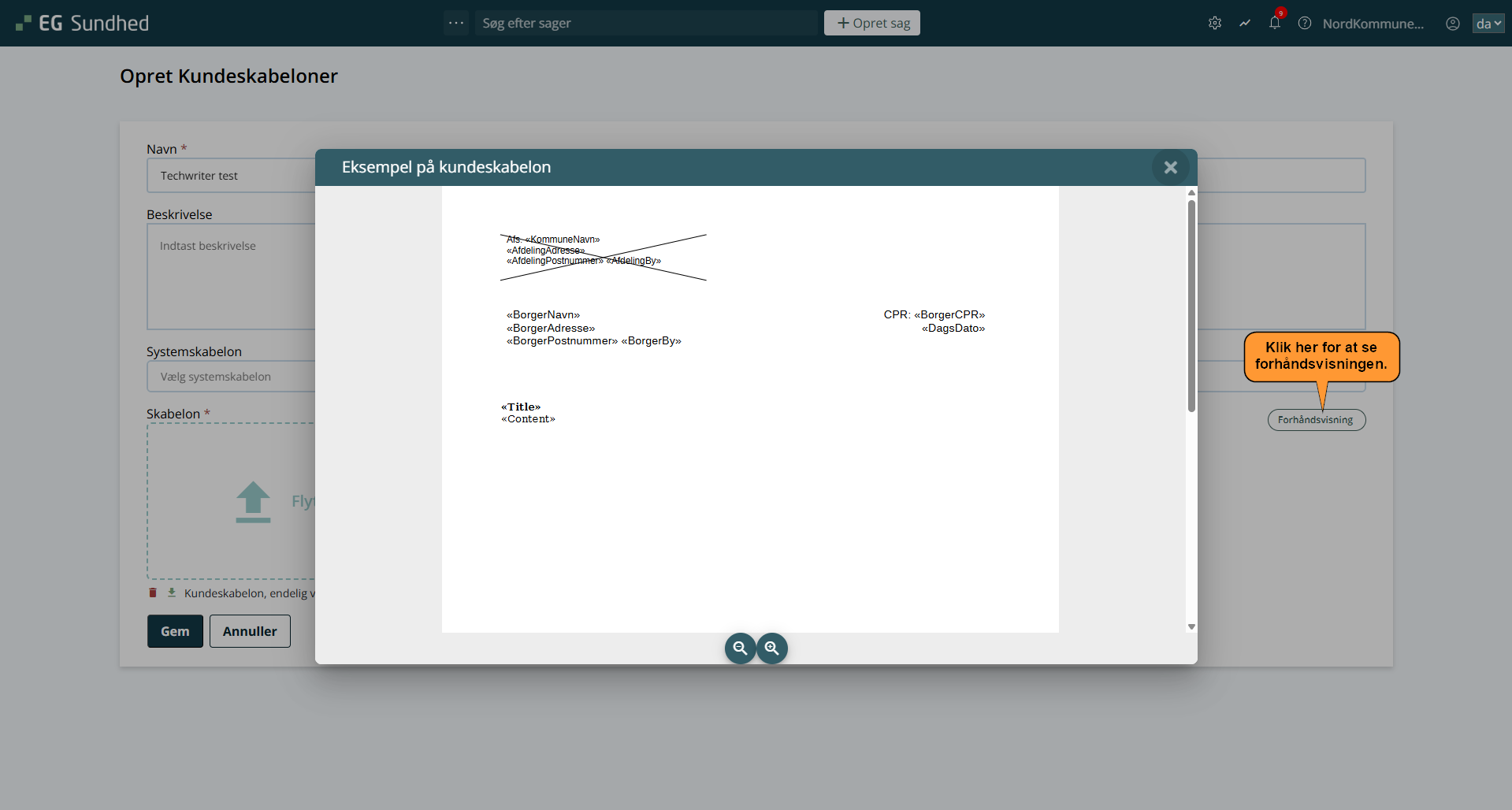 6. Klik på Forhåndsvisning for at se hvordan kundeskabelonen vil se ud, før du gemmer.