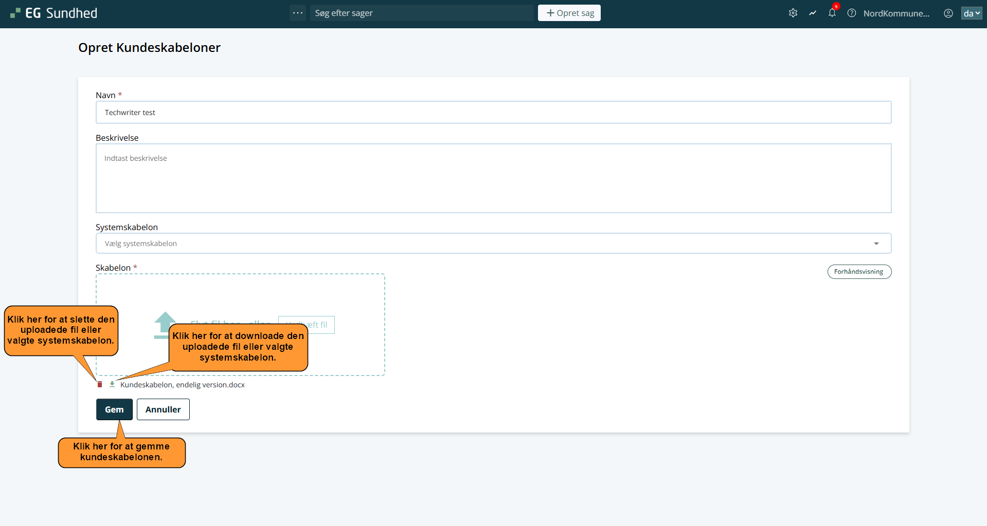 • Du kan give kundeskabelonen en beskrivelse, men dette er ikke obligatorisk.