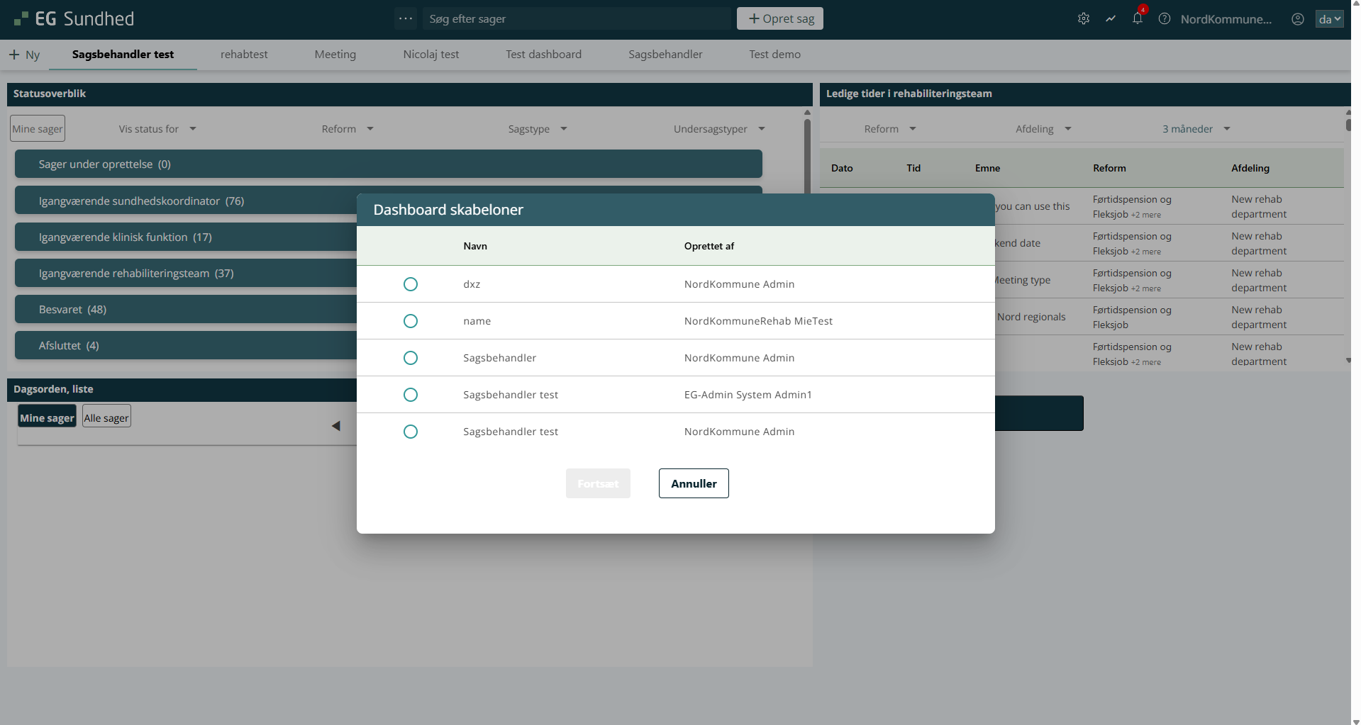 2. Dashboard fra template: Her opretter du et dashboard, som er gemt som template. Et popup-vindue vil åbne, hvor du vil kunne vælge imellem de oprettede templates.