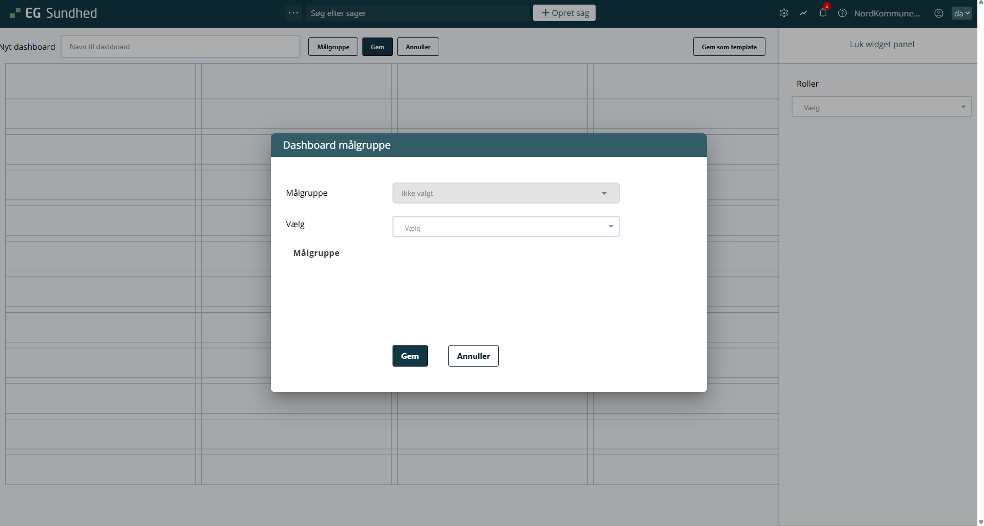 • Opretter du et dashboard fra et template:
