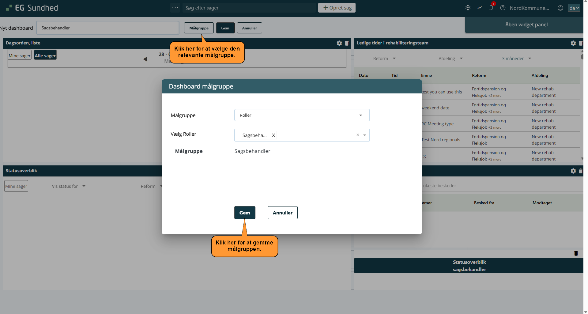 • Vælg den relevante rolle i widgetpanelet via drop-down menuen.