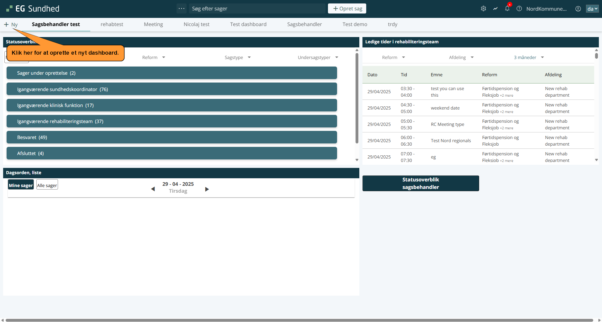 • Klik på EG Sundhed øverst i menubjælken. Når du logger ind, vil dashboardet være det første, du ser.