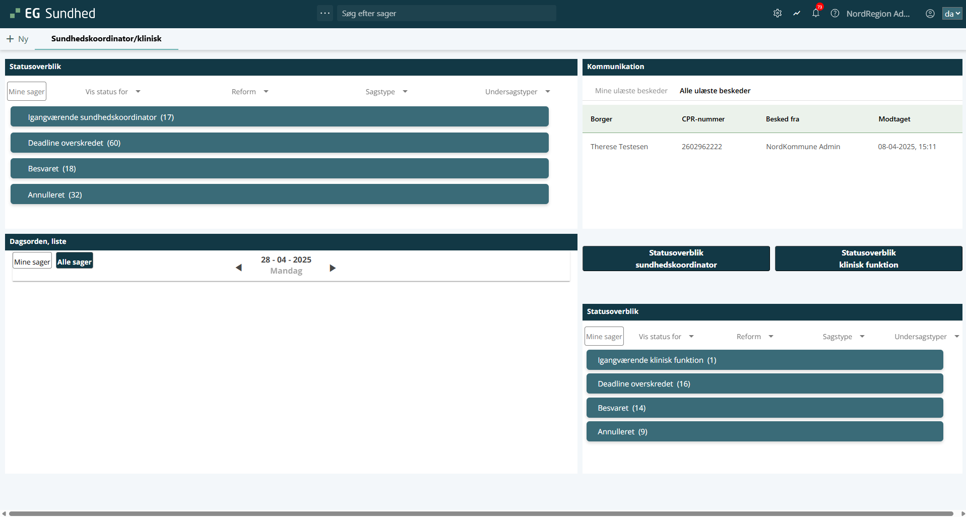 - Klik på EG Sundhed øverst i menubjælken. Når du logger ind, vil dashboardet være det første, du ser.