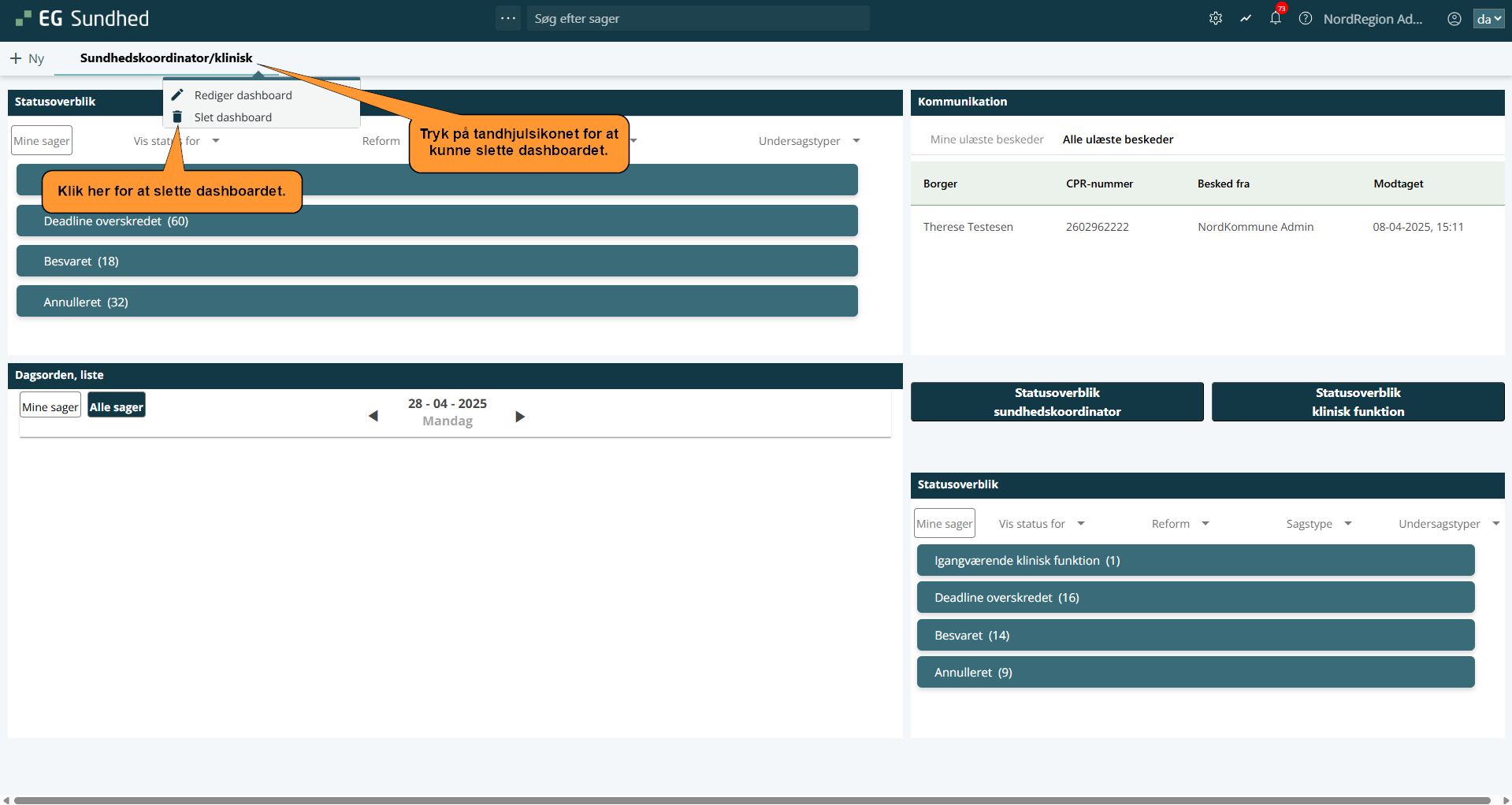 Følg disse trin for at slette et dashboard: