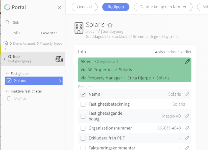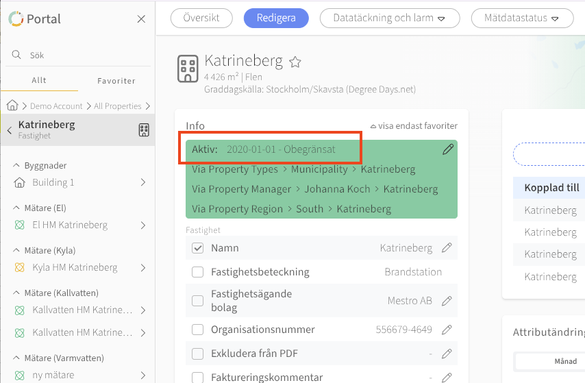 Page: Hantera dina mätare och fastigheters liv i portalen