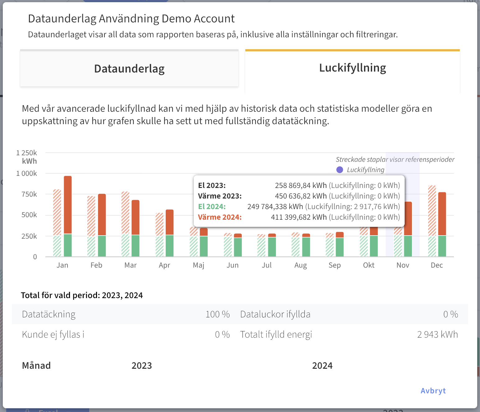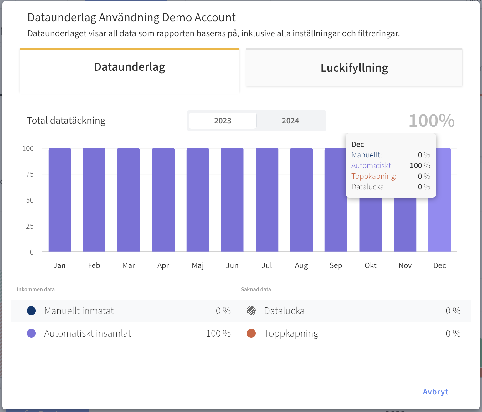 Page: Dataunderlag i Användningsrapporten