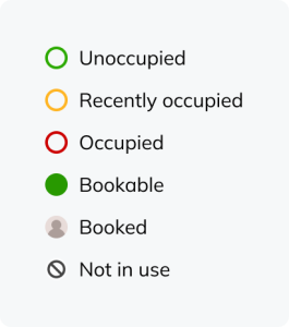 - Booking status: if your company has enabled bookings in EG Worksense, users can reserve specific spaces in advance
